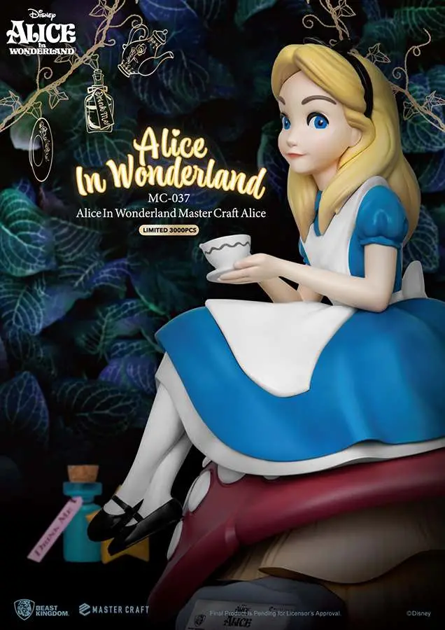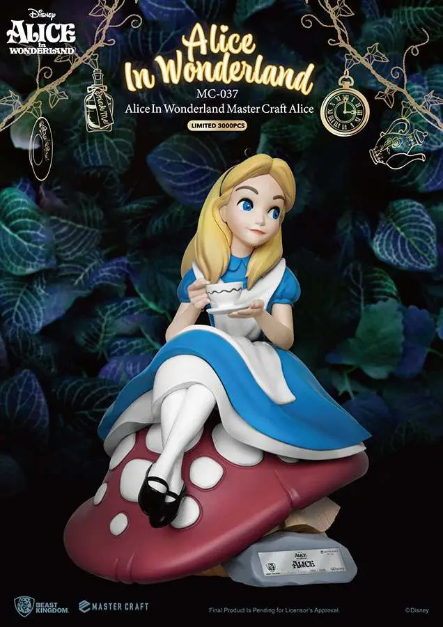Alice In Wonderland, one of Disney’s seminal animations is now recreated by the team at Beast Kingdom! The MC-037 Alice, is a wonderfully detailed statue that brings the graceful character to life from one of her famous scenes. Perched under a tree, whilst reading her favorite book, Alice is driven by the bug of curiosity and falls into a dreamlike wonderland after following White Rabbit. Sitting on top of a mushroom, and drinking her favorite cup of tea, the ‘Drink Me’ and ‘Eat Me’ potions are included for fans to recreate the famous scene from the movie.