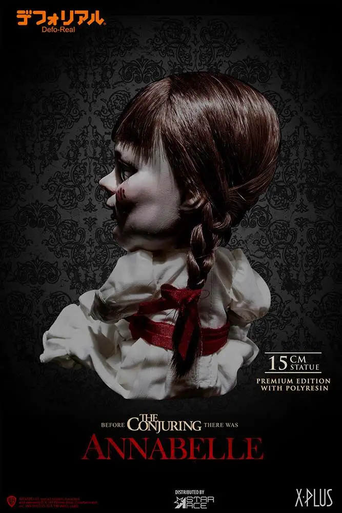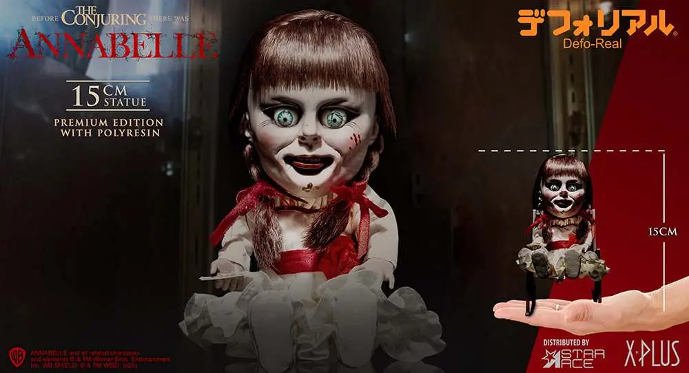 Annabelle is an evil, possessed doll first seen in The Conjuring movies.  She proved so popular that she got her own film series. Star Ace is offering Annabelle as part of their new Defo Real Polyresin collection.  These figures are limited edition sizes and are made of high end polystone, while keeping the Defo Real style of realistic likenesses with stylized, Chibi-like bodies.