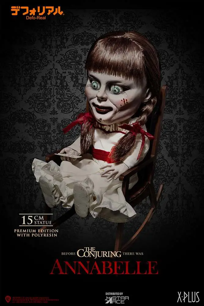 The Annabelle Defo Real figure features her look from the first Annabelle movie and comes with authentically styled fabric dress and life-like hair.   She will also have her rocking chair.  Annabelle is 15 cm tall and comes in an official closed art box.   Limited Edition of 500 pcs