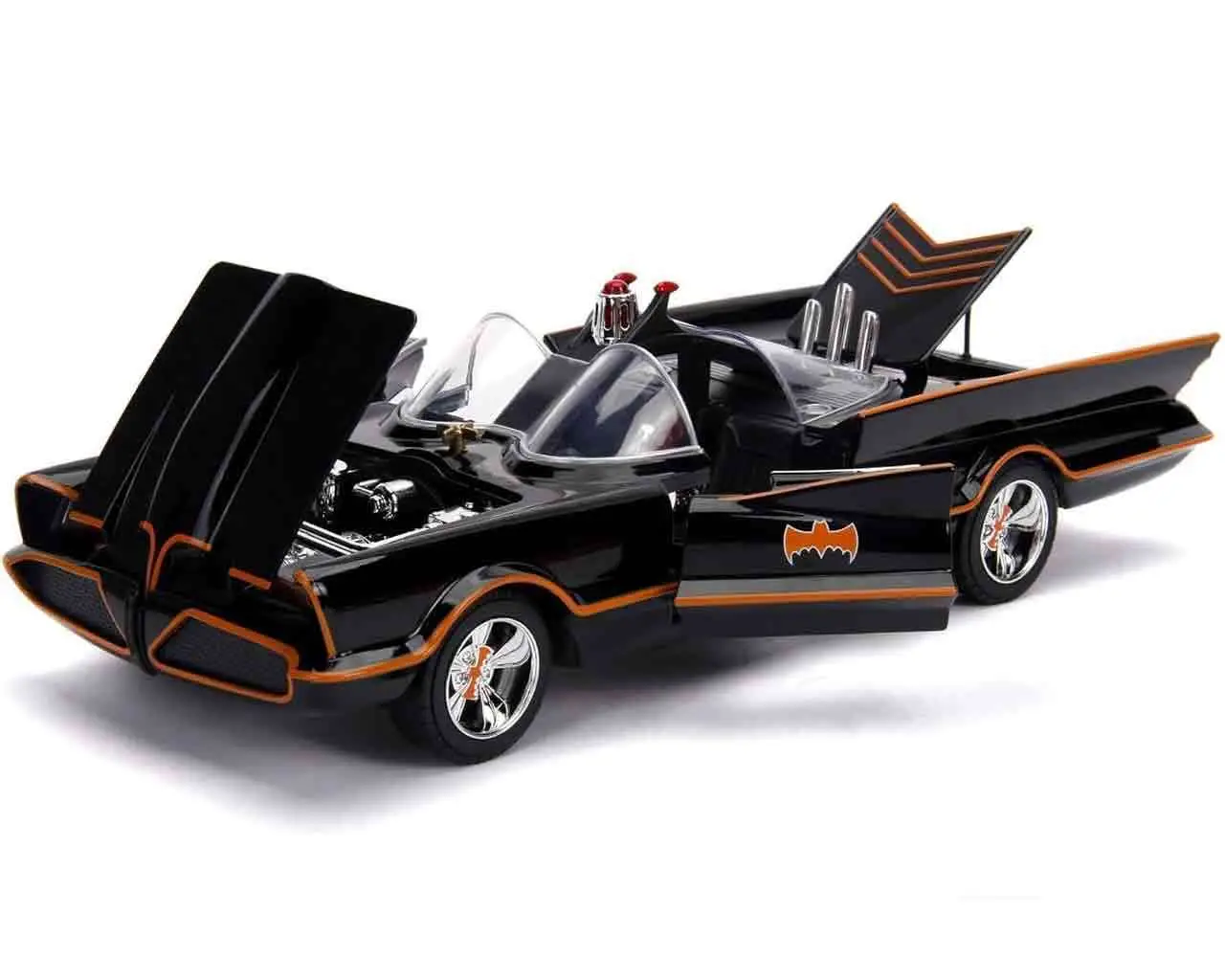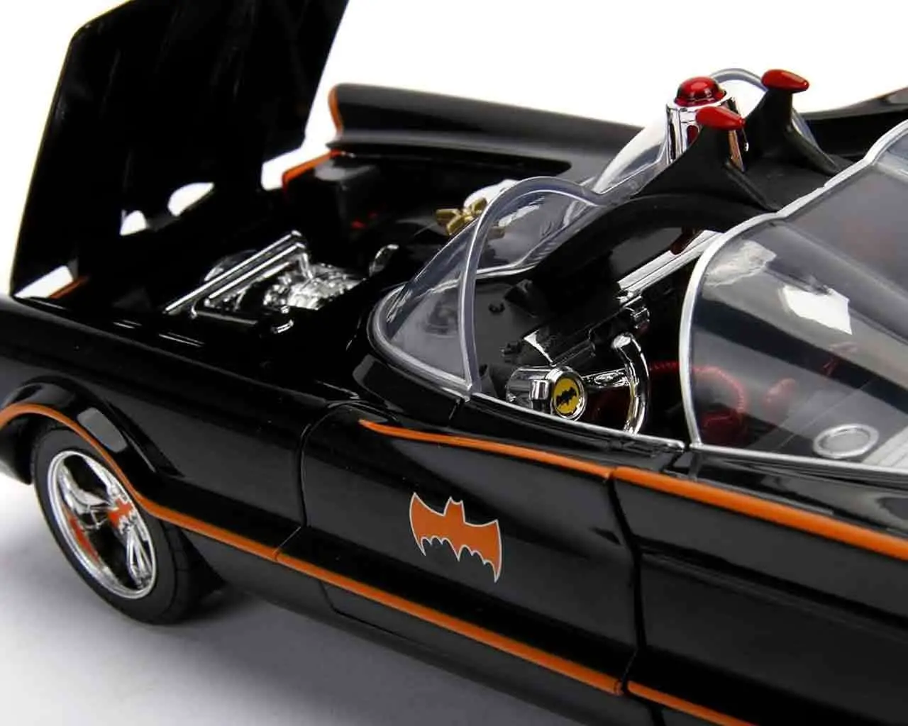 This exceptional die-cast metal model faithfully reproduces the Batmobile from the 1960s TV series.