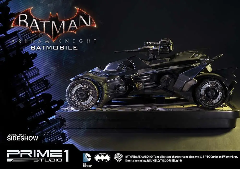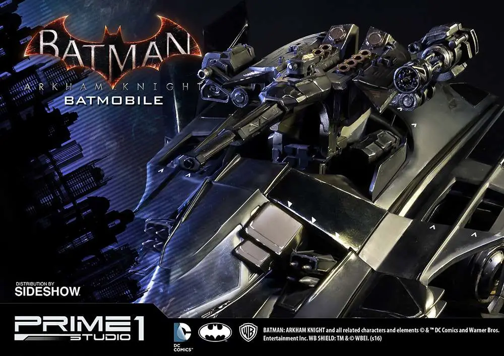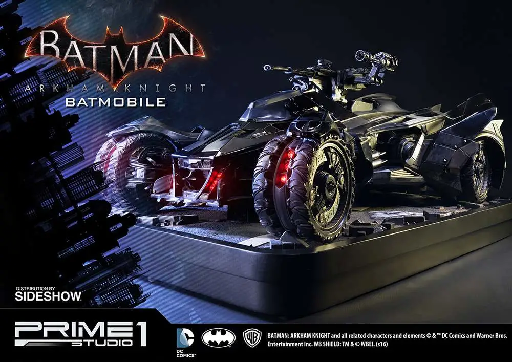 Sideshow and Prime 1 Studio are proud to present the Batmobile from Batman: Arkham Knight. Designed by Batman, the Batmobile is a highly detailed vehicle that exceeds capabilities of any other on the road. Armored and outfitted with enhanced recon capabilities and weapons, this tank-like custom car is Batman’s main mode of transportation around Gotham City. This 1:10 scale polystone diorama features an LED light-up function.
