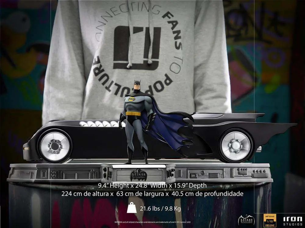 From Batman: The Animated Series comes a new 1/10 Deluxe Art Scale statue of Batman & The Batmobile! They are presented in great detail on an art deco style base.