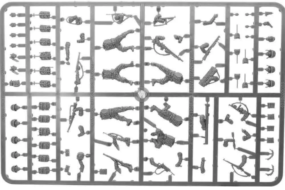 Hard Plastic components to make 30 US Army infantrymen. Includes optional weapon configurations, command models as well as early and late version backpacks.