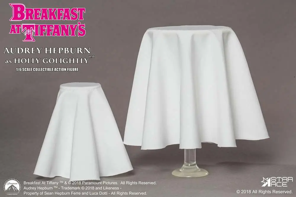 This movie-accurate figure features an authentic likeness of Hepburn with sculpted hair, and realistic jewelry, sunglasses, 6 interchangeable hands, high quality dresses (gloves, scarf and so on)...and just for the DELUXE edition, a table and chair diorama set.