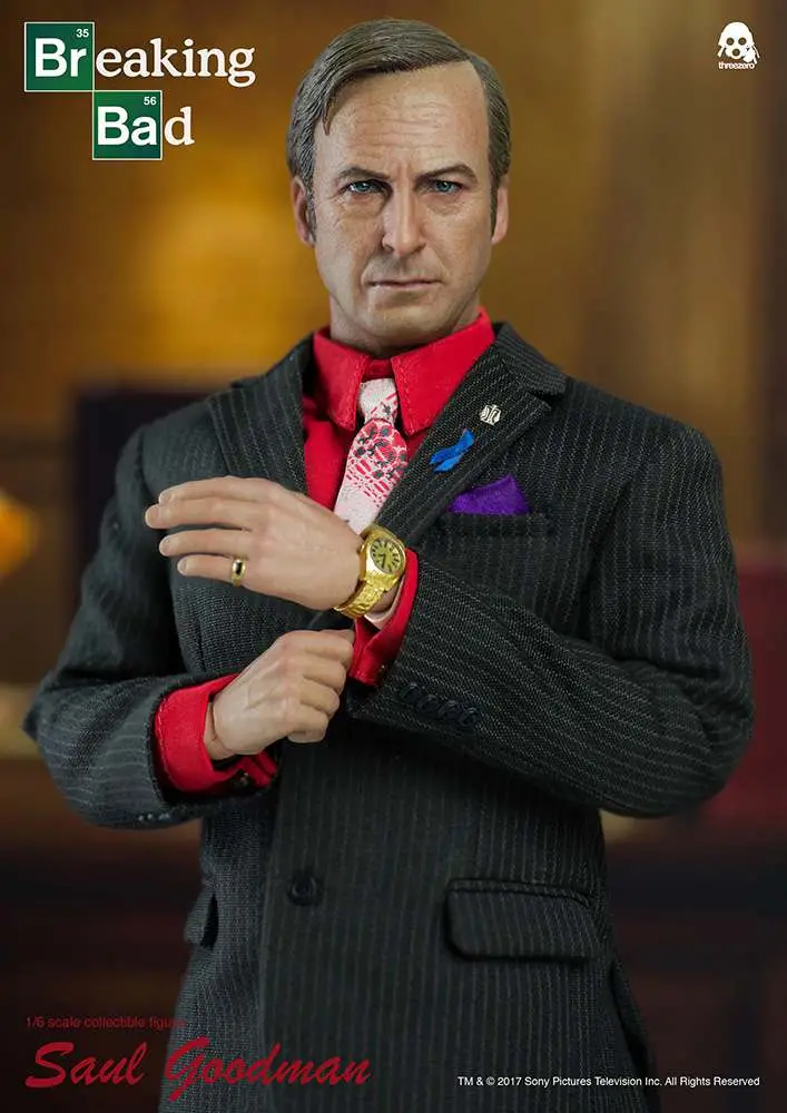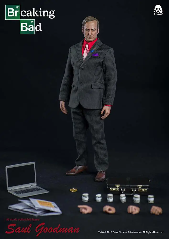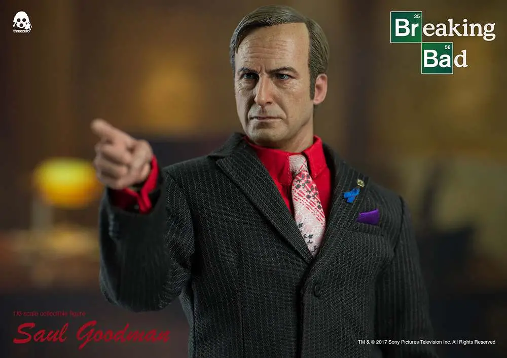 Threezero is excited to present a new collectible figure from Threezero's Breaking Bad series based on the smash hit television show. The Saul articulated figure stands approximately 12" tall and features tailored clothing, various accessories and a realistic likeness to the on-screen character.