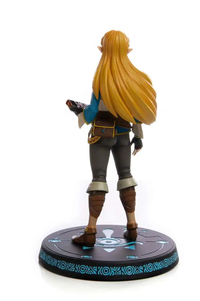 The highly detailed Zelda PVC statue is seen striking a static yet commanding pose, with the Sheikah Slate in hand. The design on the base is based on the symbol that initiates when activating the Sheikah Slate interface. The statue is housed in a beautifully designed collector's box, which can also turn and double as a diorama backdrop for added visual aesthetics.