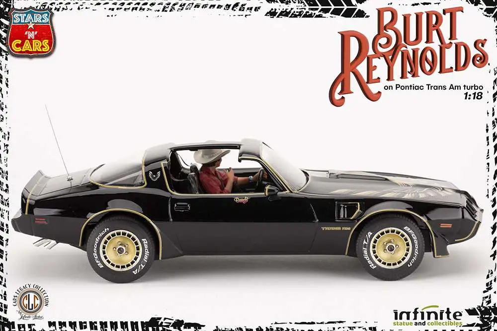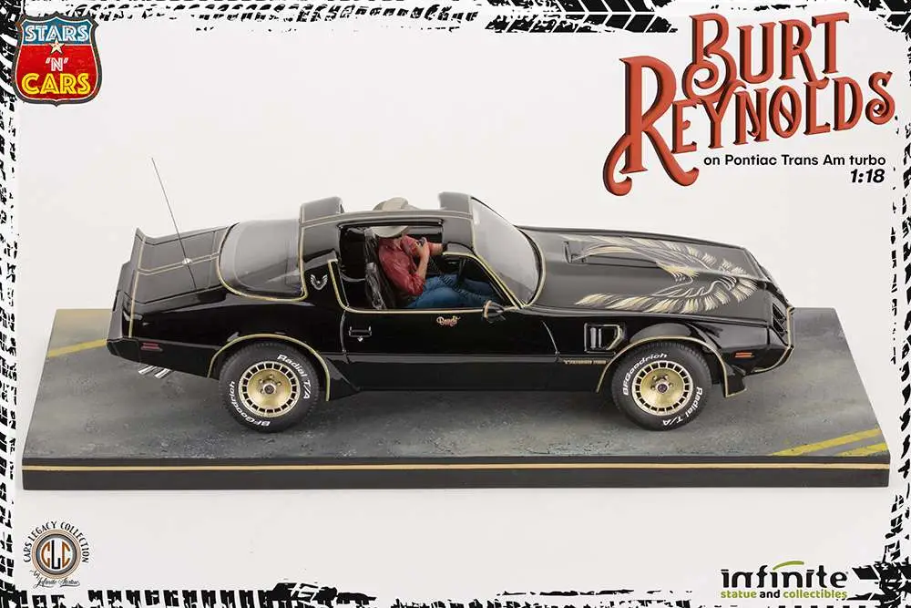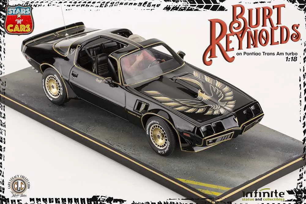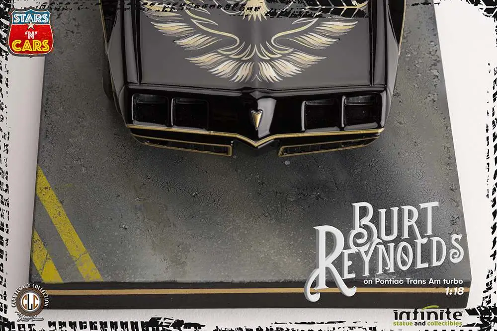 Infinite Statue and Collectibles adds to its line Cars Legacy Collection -Stars 'n' Cars this wonderful replica dedicated to the most iconic and beloved duo of American cinema of the 70s, Burt Reynolds on Pontiac Trans Am 1/18 Resin Statue.  The car model and its famous pilot are reproduced in great detail and colours with accurate attention. Once again, the Artistic Team of Infinite gave their best for this legendary and blazing replica. It comes in limited edition.