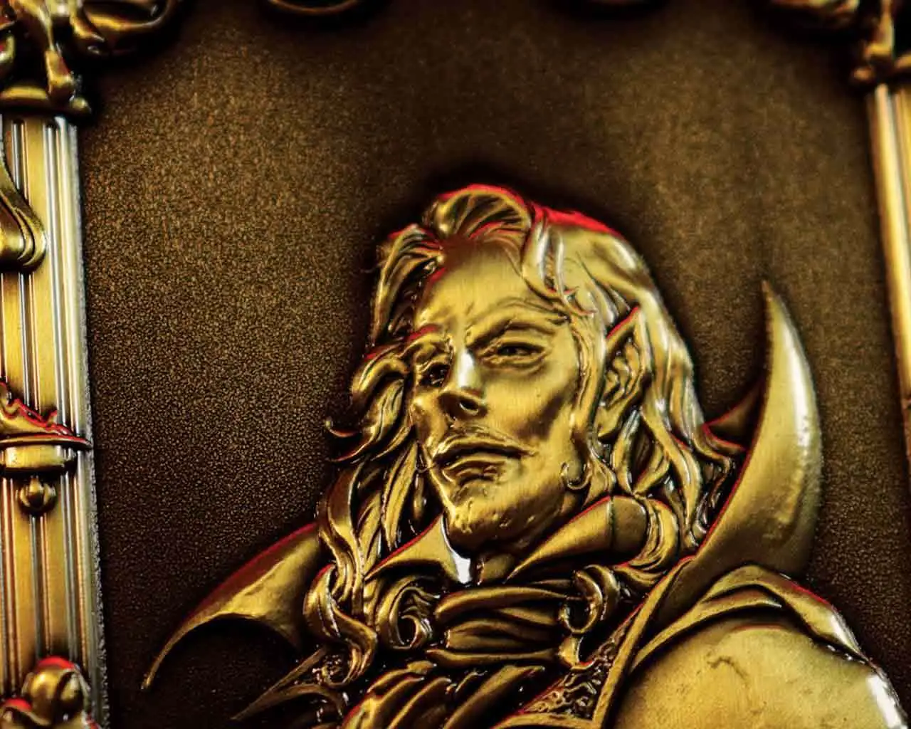 With the power of the crimson stone, the antagonist Dracula presents the biggest challenge to the Belmont clan and the human race. Choose your side with this collectible metal ingot! Featuring a heavily embossed double-sided design, this collectible is limited to 5,000 worldwide with each being individually numbered. A display stand is included within the presentation box.