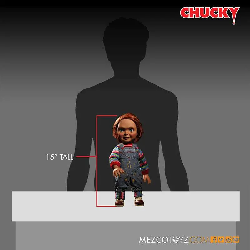 Just as he did in the films, Chucky speaks 4 movie-accurate phrases when you activate the discreetly placed button on his back.