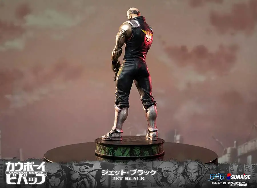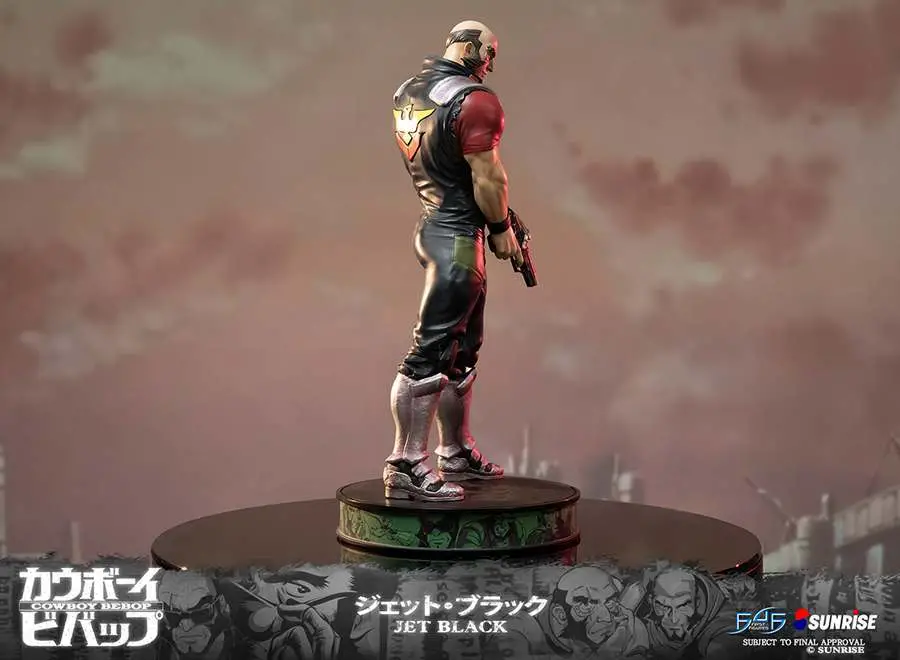 second statue in F4F line dedicated to Cowboy bebop franchise. Statue comes with Jet Black holding the pistol in a low ready position, ona highly detailed base capturing the theme and style from the Cowboy Bebop anime. Includes Authentication Card