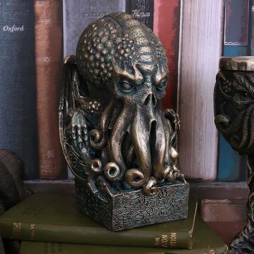 Casted from the finest resin and carefully hand painted, this beautiful figurine, 17 cm high, reproduces the best known and loved among the Ancient Ones created by Lovecraft. Sitting on a stone covered in runes, this figurine makes a perfect gift for any admirer of tales written by the Providence Bard