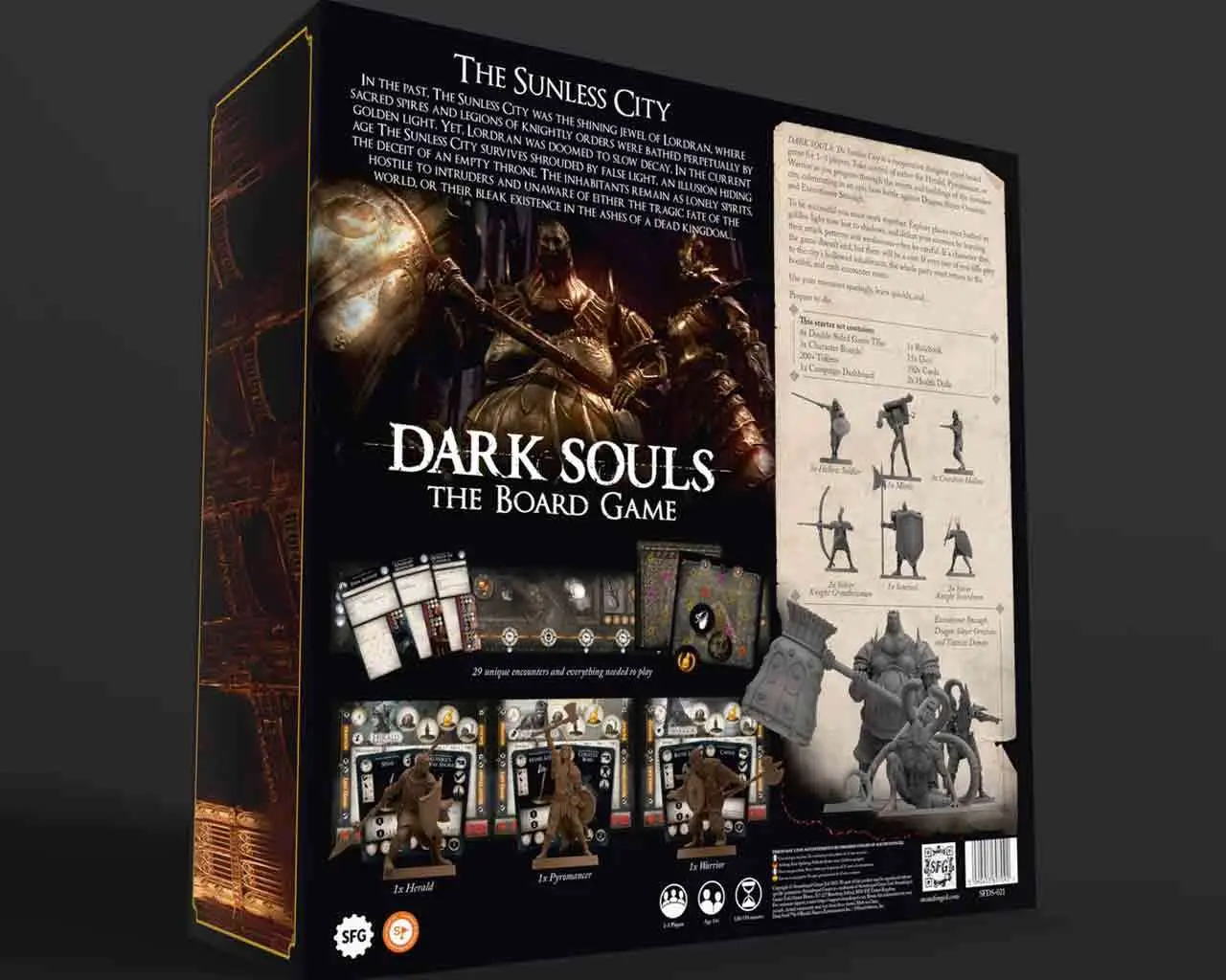 DARK SOULS: The Board Game - The Sunless City reimagines theoriginal DARK SOULS: The Board Game experience with refreshed rules driven bycommunity feedback, including a new campaign and encounter system! You can alsocombine it with any core set.