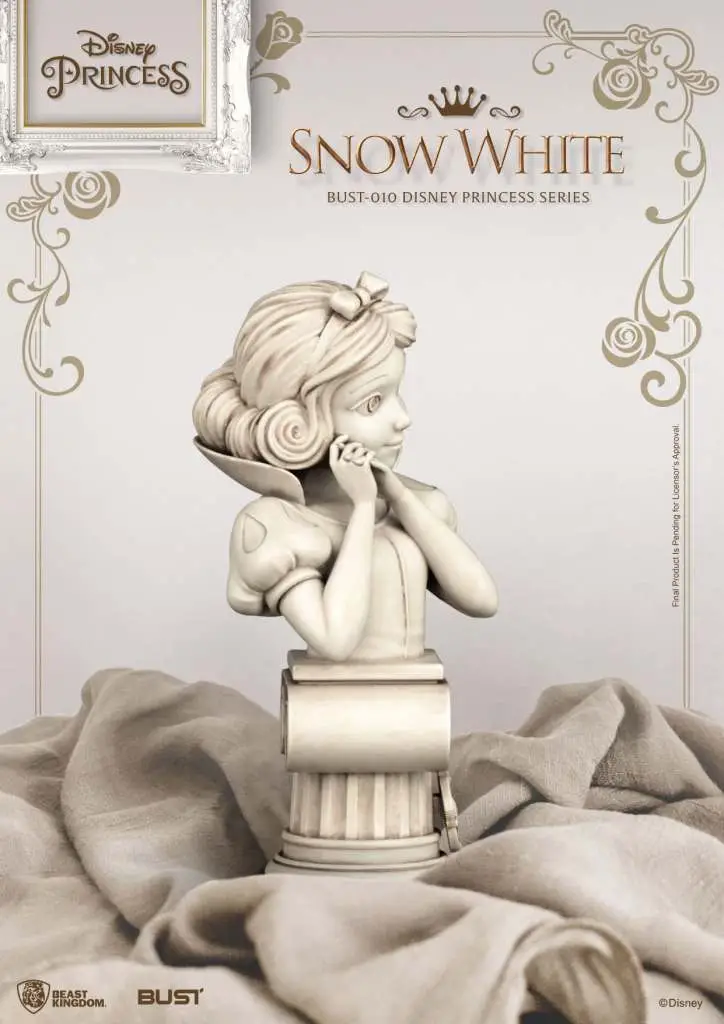Beast Kingdom is proud to present the latest plaster-portrait 'BUST' series focusing on a selection of classic Disney Princess characters. Each bust includes a base with an engraving of a special emblem that represents a theme from their respective movies! These Highly detailed bust are made in pvc and painted in a classic marble style