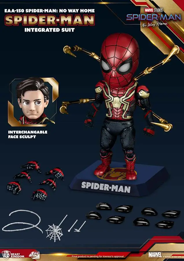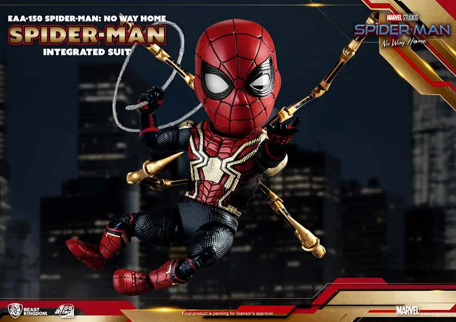 Here we have the latest No Way Home EAA-150 Spider-Man Integrated Suit. The figure’s appearance is strengthened by the whole-body lines, the familiar spider web pattern, and metallic paint. It also retains the high mobility of the standard version and includes multiple eye designs, hand shapes and other accessories. The stunning Integrated Suit is faithfully restored in this figure allowing fans to freely express all kinds of Spider-Man fighting stances. Friends who loves the Egg Attack series, don’t miss this addition to the Spider-Man series!