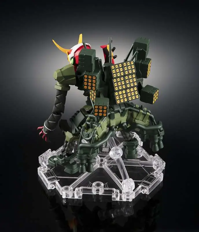 The massive backpack and three-barrel Gatling cannon are newly sculpted. The chin is able to open and expanding the range of expression.