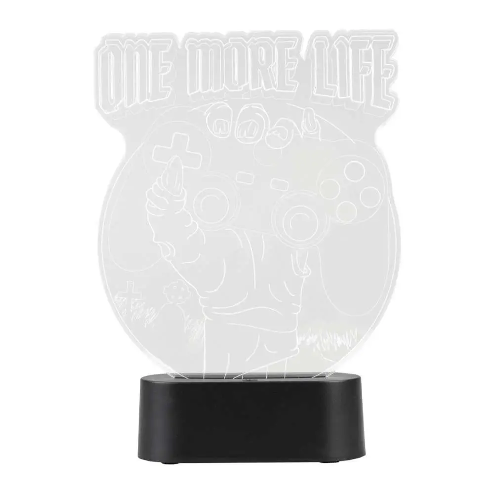 It's made of ABS and methacrylate. It features a fixed light mode with a single control button located on the top of the base. It runs on three 1.5V AAA batteries (not included) or a USB Type-C cable - 5V DC 1A input (included). Dimensions: 17 x 20 x 5.5 cm.
