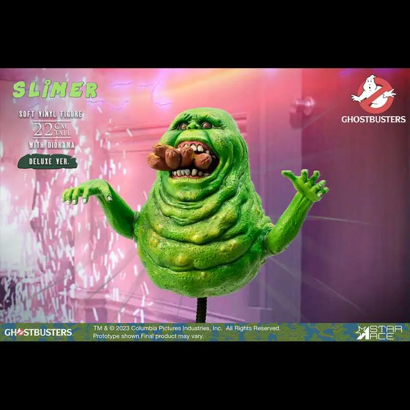 Introducing the brand-new Ghostbusters statue from Star Ace - the hungry “onionhead” ghost - Slimer! This delightful collectible captures the mischievous spirit of Slimer in all its glory. Crafted with meticulous attention to detail, this soft vinyl ghost is a must-have for Ghostbusters fans and collectors alike. With rotatable arms and displayed on a bendable flight stand, he can menace your collection in a variety of flying poses. Every wrinkle, every squiggle, and every nuance of Slimer's distinctive appearance has been faithfully recreated.