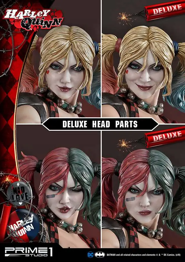 Prime 1 Studio is proud to introduce the bubbly supervillain, MMDC-36DX: Harley Quinn Deluxe version from DC Comics. All the essential details of the character have branded with the Comic taste in this MMDC-36DX: Harley Quinn. The Deluxe version included a variety of parts to give the chance to display at variation of pose. A total of four (4) alternative portraits with three (3) headstand to be included in this Deluxe version. You will be able to display Harley Quinn holding both hand a revolver with an alternate empty holster. Not to mention that her gag-themed weaponry such as her well known mallet in her hands and dynamite all over the base with LED illumination. Her iconic blonde hair portrait and a variation of red and green hair color portrait based on the comics which fit perfectly with her costume. Don't miss this chance to add the must-have lovely supervillain statue on Valentine's day.