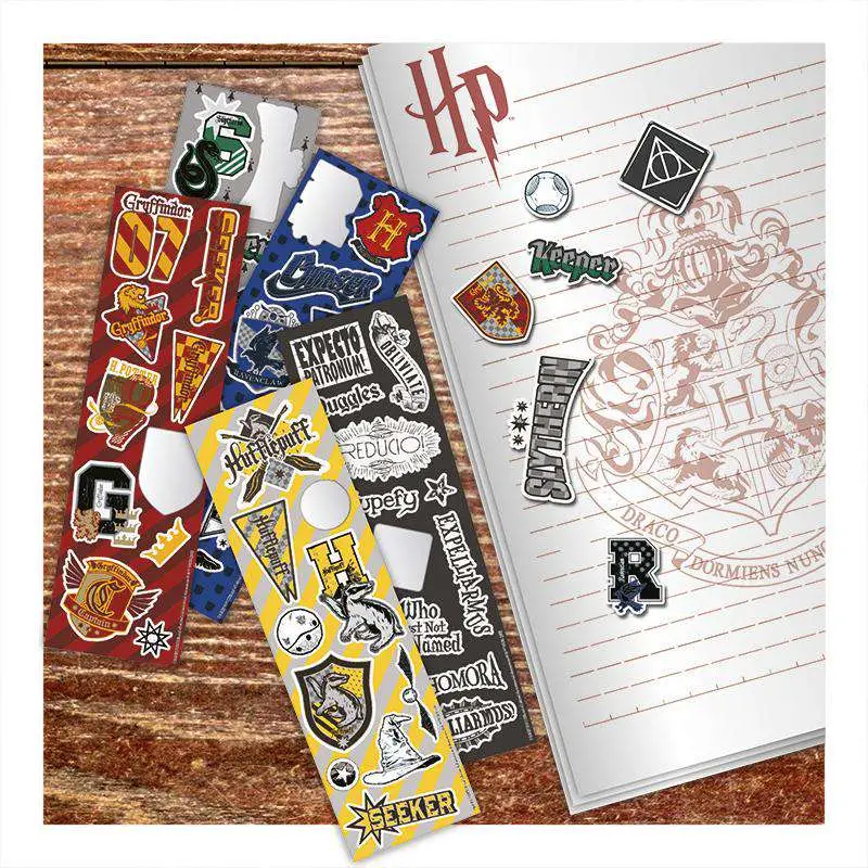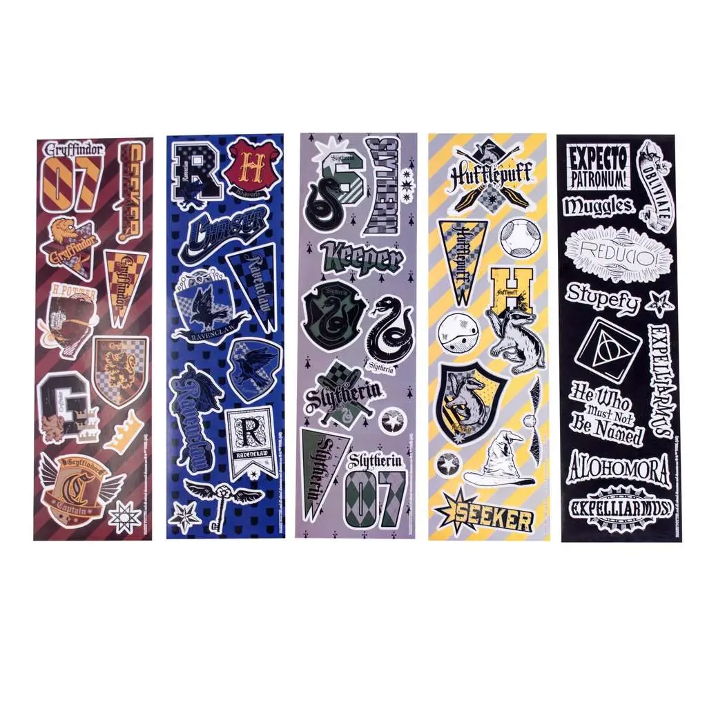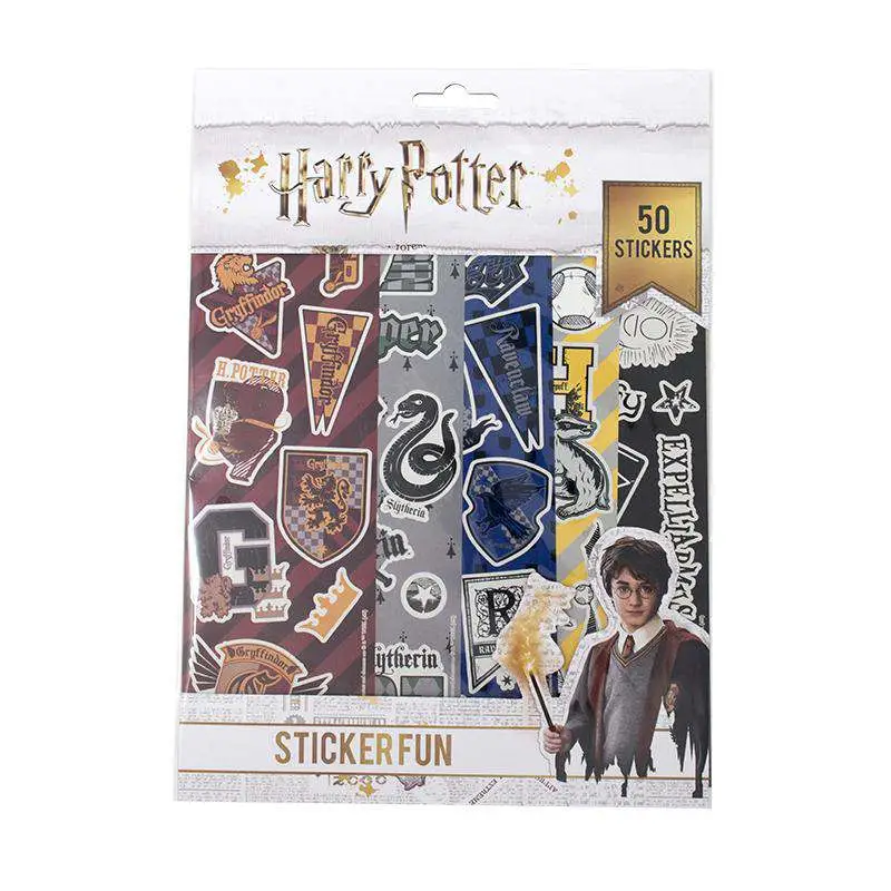 Get your sticker fix with the Harry Potter Sticker Fun set. The product contains 50 stickers 5 sheets one for every house and charms and spells.