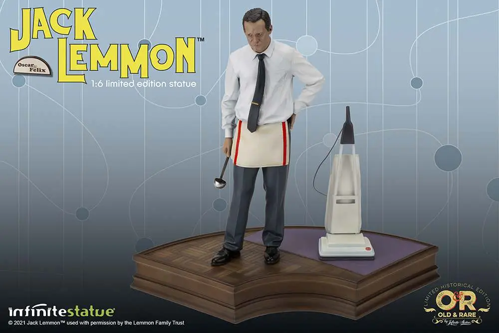 Infinite Statue pays homage to the "irresistible neurotic" of American comedy. Jack Lemmon 1/6 is the stunning resin statue that takes a front seat in the line Old & Rare. This Limited Edition includes an interlock base that allows to combine this statue with the one of Walter Matthau and reunite the famous "Odd Couple".