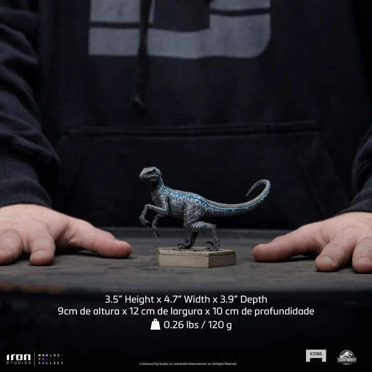 From the Jurassic World film series comes an Icons statue of the beautiful Velociraptor, Blue. Standing on a hexagonal base, with the Jurassic World logo, this statue will be a great addition to any dinosaur collection!