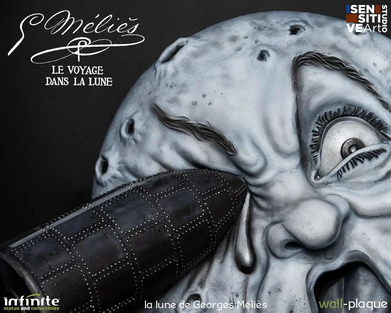 Sensitive Art Studio in collaboration with Infinite Statue & Collectibles presents La Lune de Georges Meliès Wall Plaque. This stunning new version of Georges Meliès' “Moon” is a tribute to the creative genius of Georges Meliès, and to his best-known work, "Moon". The sculpture conceived and designed by Fabio Berruti's Sensitive Art Studio is perfectly identical to the original drawing, taken from one of Melies' "tableau", and its transformation into 3D combined with the meticulous care of coloring make it an unprecedented refined artistic object. La Lune De Georges Meliès Wall Plaque is a numbered limited edition.
