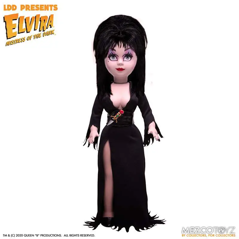 Elvira Mistress of the Dark sports her iconic baring black dress and batty, teased hair. The proprietress of horror comes complete with a dagger that she can hold and also store neatly on her waist belt.LDD Presents Elvira Mistress of the Dark stands 10” tall and features 5 points of articulation. She is packaged in a window box, perfect for display.