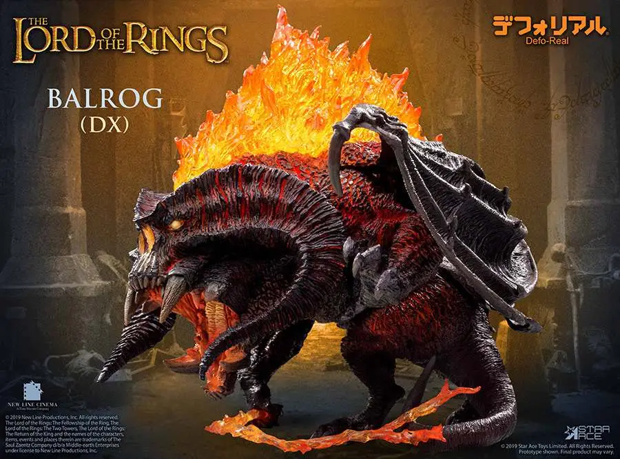 The Deluxe version of the Balrog features a diorama display base and a miniature Gandalf.