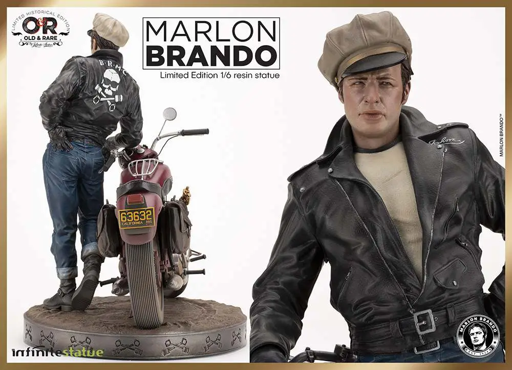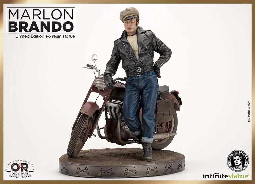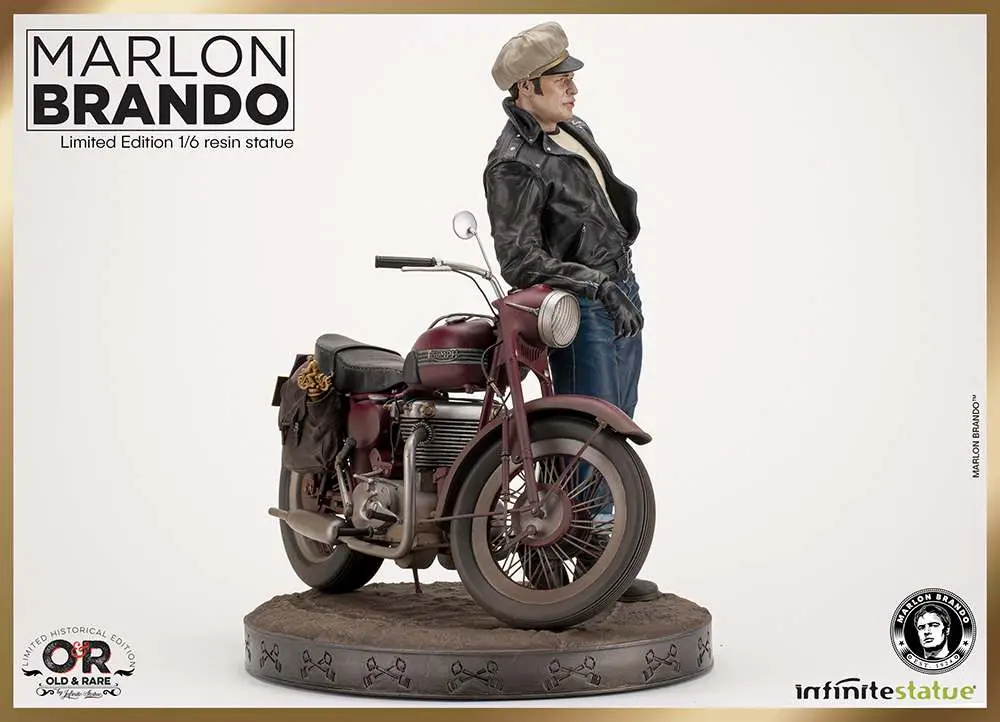 Infinite Statue adds to its line Old&Rare this extraordinary statue of Marlon Brando with Triumph Thunderbird. Masterpiece of details, paint, perfection, this resin sculpture is hand-painted with base and comes in Limited Edition.