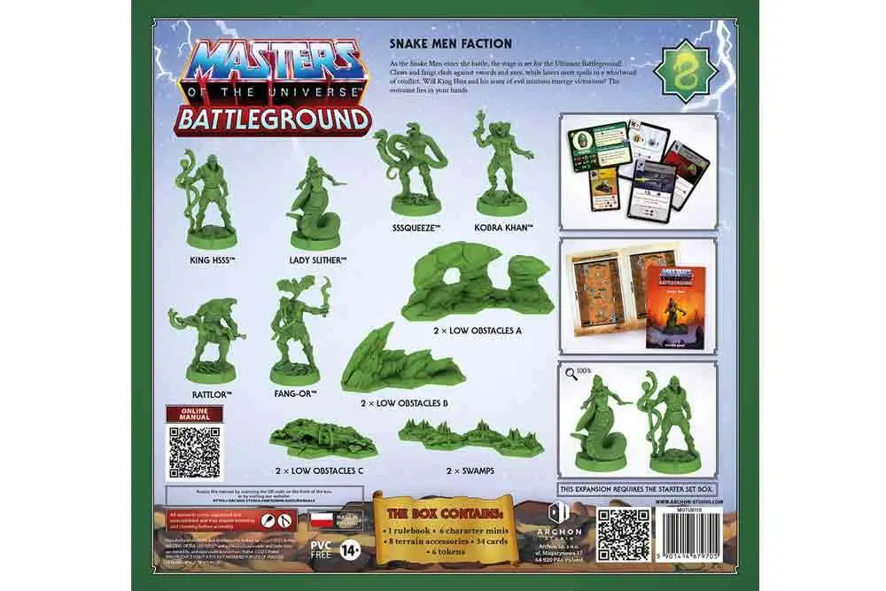 As the Snake Men enter the battle, the stage is set for the Ultimate Battleground! Claws and fangs clash against swords and axes, while lasers meet spells in a whirlwind of conflict. Will King Hsss and his army of evil minions emerge victorious? The outcome lies in your hands.