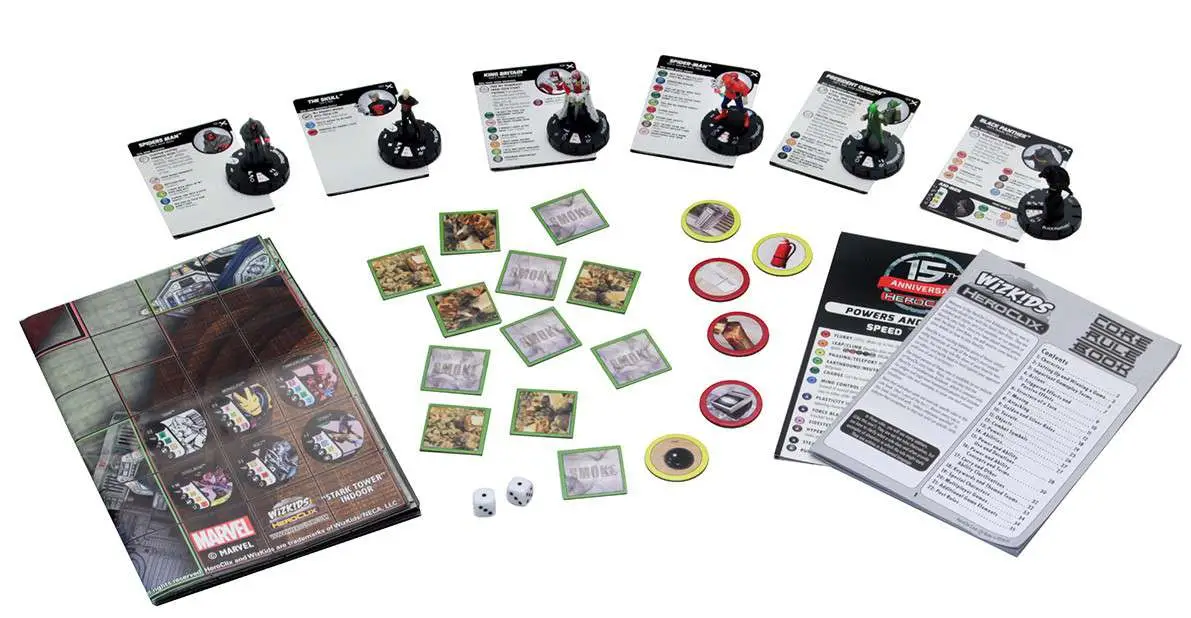 Along with these six awesome figures, this Starter Set includes everything a player needs to learn and start playing HeroClix today! From the figures to a Heroclix Rulebook, a double-sided Map, a Powers and Abilities Card (PAC), Object tokens, terrain tokens, dice, and character cards. Get this otherworldly Starter Set today to start your HeroClix adventure or bolster your expanding collection