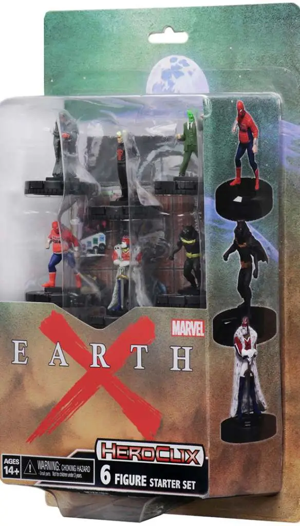 The Earth X Starter Set includes 3 terrifying villains and 3 iconic heroes from the world of Earth X. Whether you want to manipulate your opponents with the likes of Spiders-Man or teach your allies the ways of Great Responsibility, this Starter Set has something for you. For the first time in Marvel HeroClix, you’ll get to take advantage of location maps!