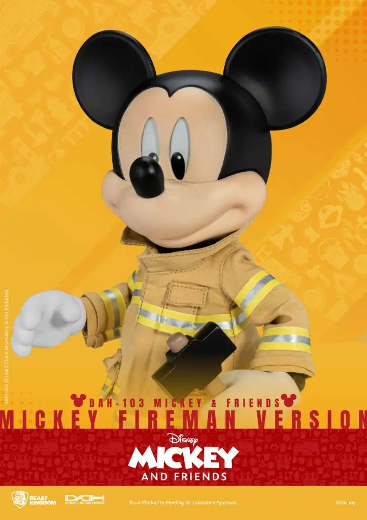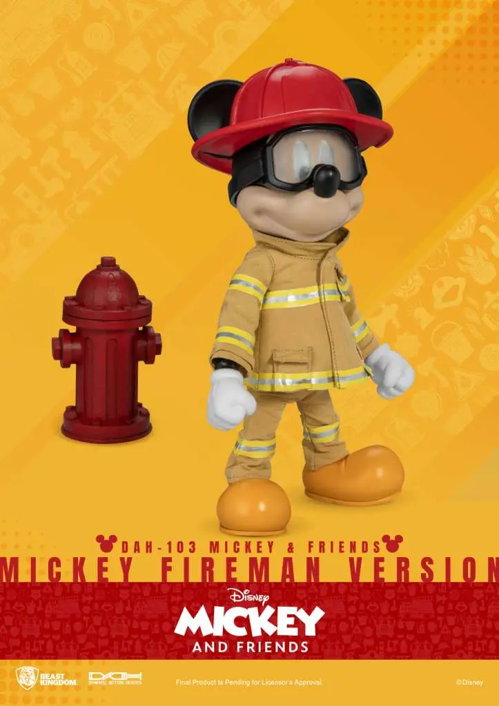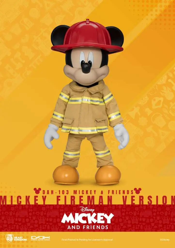 Under Beast Kingdom’s ‘Entertainment Experience Brand’, Disney’s most cherished character is poised to extinguish blazes with the unveiling of the DAH-103 (Dynamic 8ction Heroes) ‘Mickey & Friends’ Fireman Mickey. Adorned in an iconic yellow firefighter outfit crafted from real fabric, and a red firefighter helmet, Mickey exudes professionalism and readiness for action.