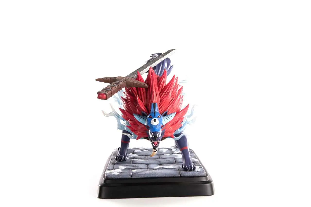 In this form, Oki is a fierce fighter that teams up with Amaterasu to save Nippon from evil demonic forces. Okami is renowned for its unique art style, inspired by Japanese sumi-e ink illustrations. This statue reimagines Oki, but stays true to his video game appearance, with fearsome red eyes and fur, icy blue flames swirling around his body, and his signature Kutone sword on his back.