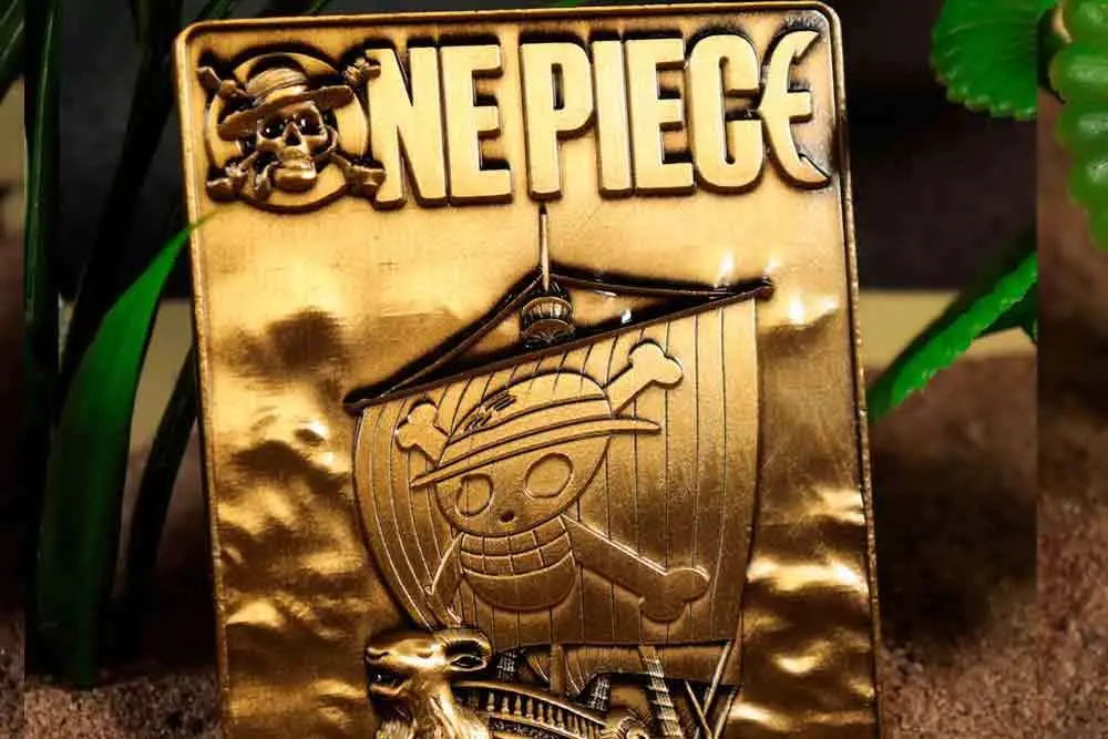 Monkey D. Luffy is a wanted man! Celebrate his evasion of the law with this officially licensed, limited edition One Piece ingot. Decorated with colour print on the front depicting Luffy's wanted poster, and with the Going Merry embossed in an antique gold finish on the reverse, the ingot measures 60 x 89mm, is limited to 5,000 worldwide and comes with a display stand in its presentation box.