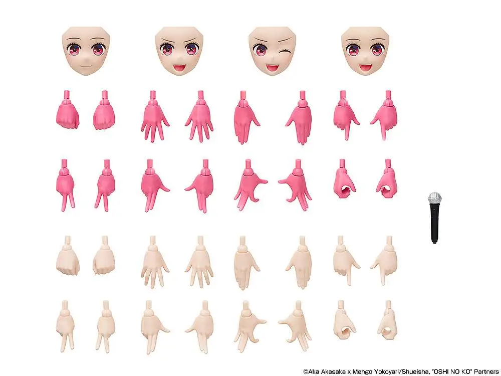 Product Contents: Body ×1, Swimsuit body ×1, Facial expression parts × 4 types, Hand parts ×8 types, Swimsuit hand parts ×8 types, Microphone ×1, Display pedestal (Large) ×1, Display pedestal (Small) ×1