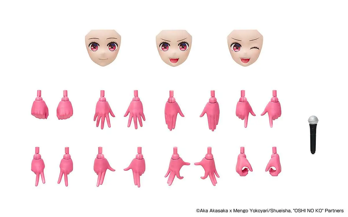Optional parts such as a microphone, eight types of hand parts, and display pedestals are included.