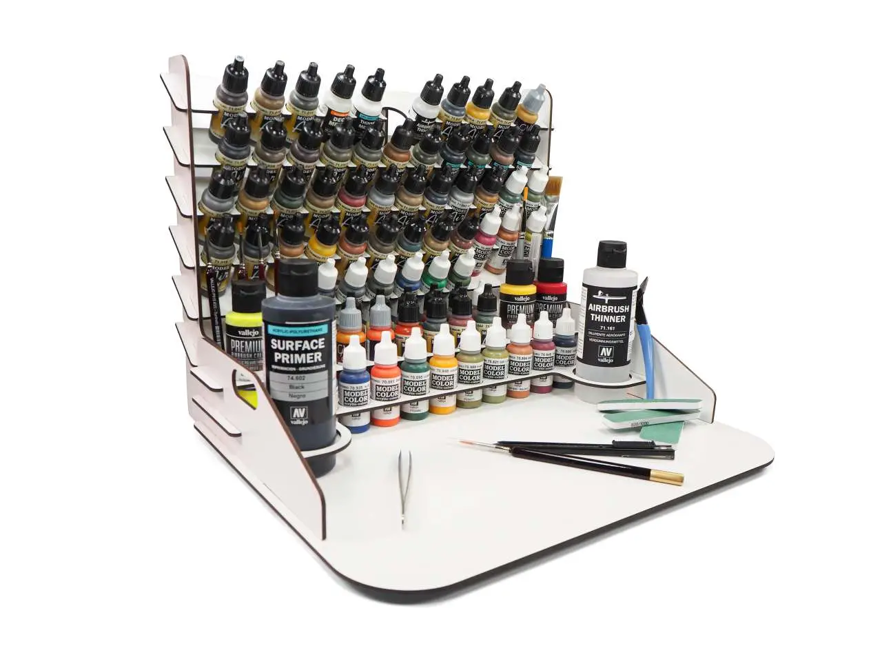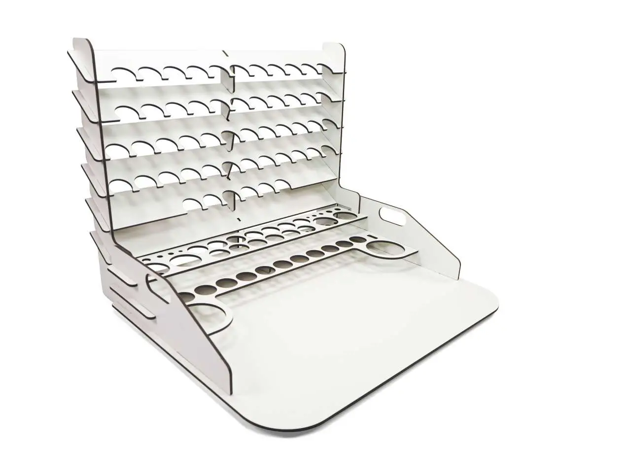This module has space for 76 bottles of 17 ml,together with 4 bottles of 35 ml or 60 ml, 2 bottles of 200 ml and 10 brushes.