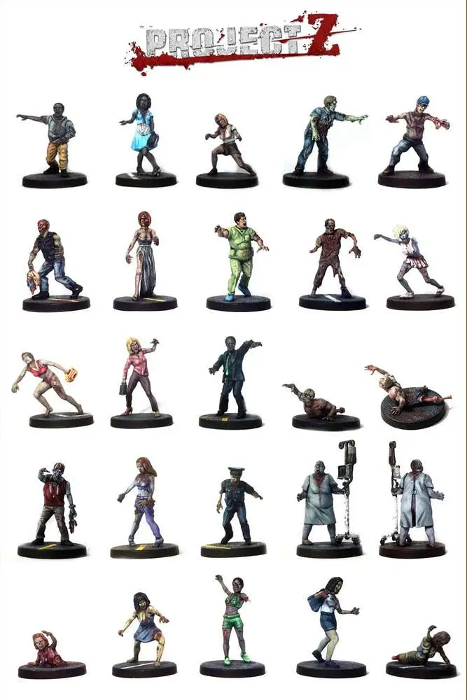 Box with 23 plastic miniatures + statistic cards in english . Miniatures need assembling and painting