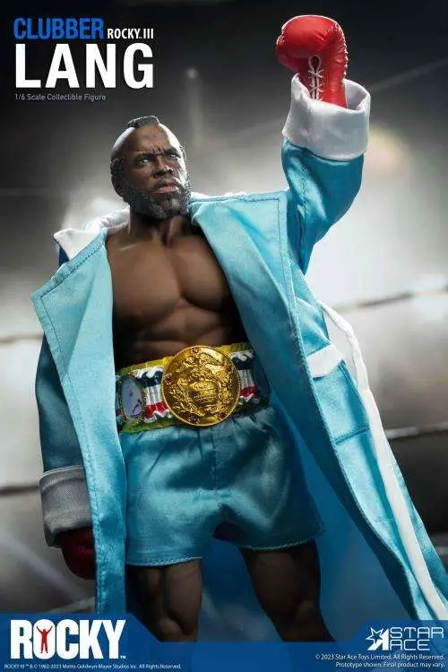 This 1/6 figure stands 30 cm tall and features a head sculpt with an authentic likeness to Clubber Lang. He comes with interchangeable hands and boxing gloves, his blue robe and the Championship belt.