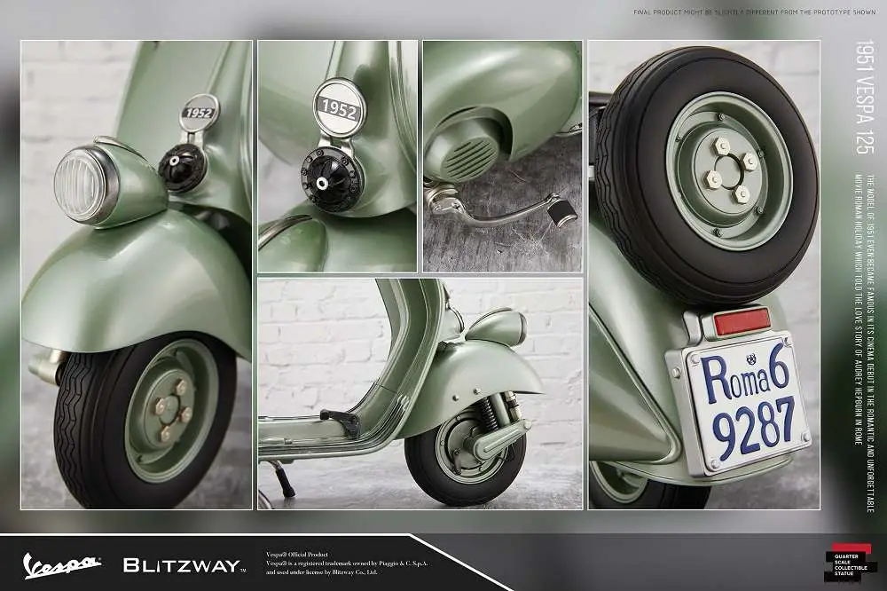 The 1951 Vespa was used for shooting the movie Roman Holiday 1953, and here is your chance to own the model replica without the princess Ann (Roman holiday) statue...perfect for vehicles collectors!
