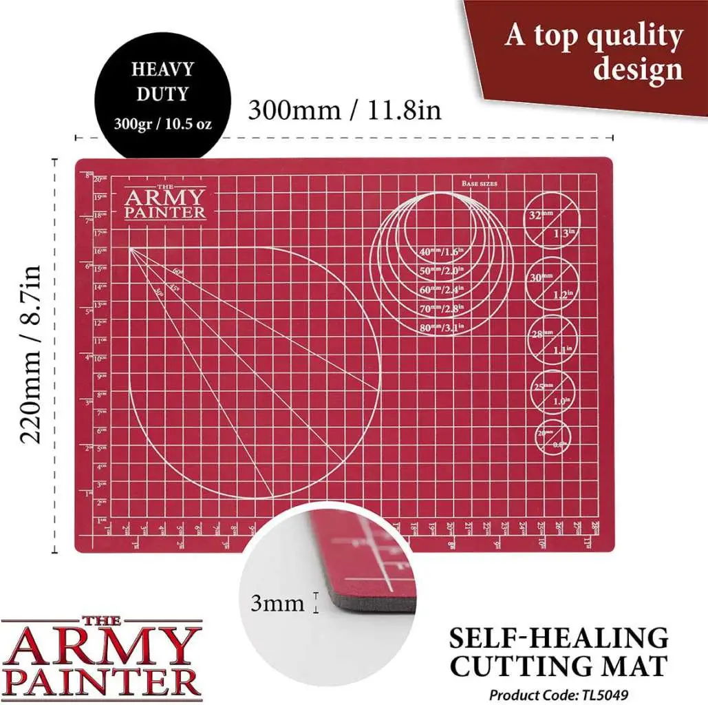 The Cutting Mat is used as a base for all modeling, assembling and conversions of wargaming miniatures. It will protect your workstation from unnecessary damage. The Cutting Mat is self-healing and comes with cutting/measuring lines for precise cuts.