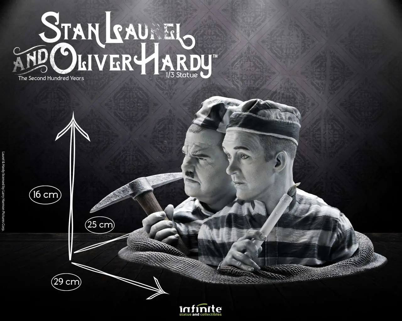 From the comedy duo Laurel & Hardy in one of their most famous short films "The Second 100 Years" from 1927, Infinite Statue & Collectibles dedicates this spectacular statue to the two greats of laughter. Made of hand-painted resin with great detail, Stan Laurel & Oliver Hardy 1/3 Statue is an artistic homage inspired by the comic gags and timeless humor of Stan Laurel and Oliver Hardy, and captures them with dynamism and hyperrealism in an original and exclusive 3D sculpture. Limited Edition.