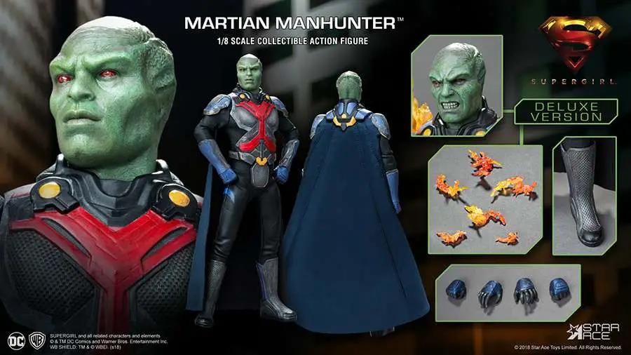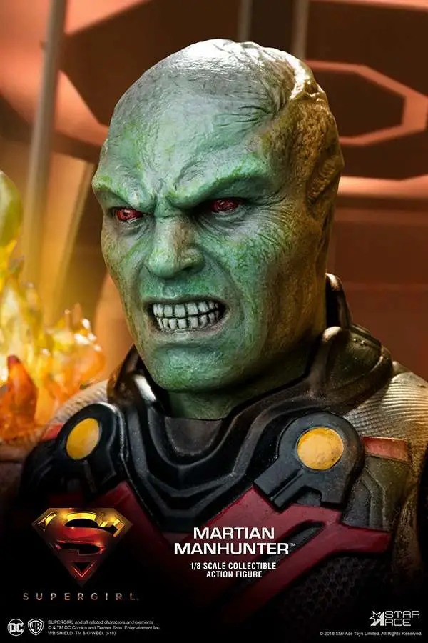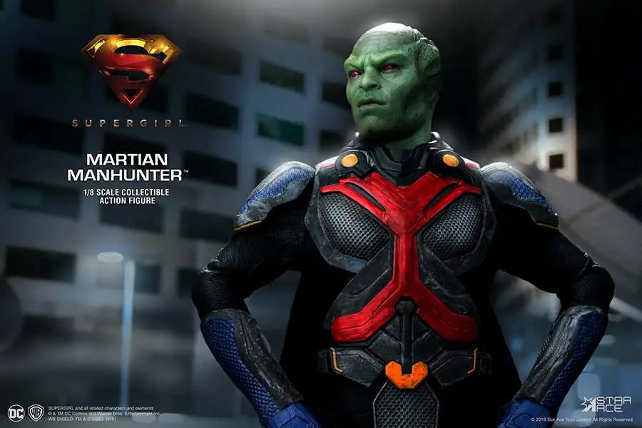 We are pleased to announce that the third character in Star Ace’s DC TV Real Master Series of 1/8 scale collectible action figures is The Martian Manhunter from the CW television show. Originally disguised as Hank Henshaw, the head of the Department of Extranormal Operations, J’onn J’onzz is actually a green Martian, one of the last of his kind. He has taken on a mission to help Supergirl protect Earth from threats both human and extraterrestrial. A shapeshifter, J’onn can look human, but when he goes into battle he takes on his true form and fights for justice as the Martian Manhunter.