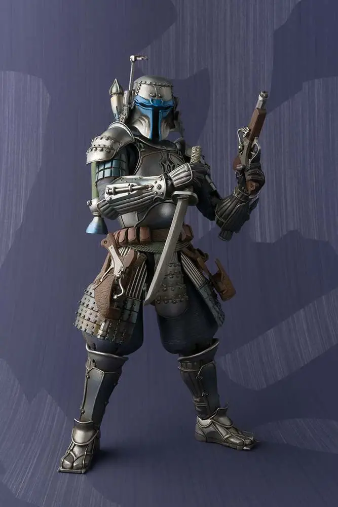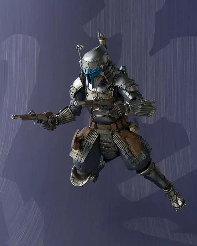 Timed for the upcoming new Star Wars film come three consecutive new releases in the MEISHO MOVIE REALIZATION series! The first is Ronin Jango Fett. Includes his trademark pair of guns, which can be attached to his legs. Includes 8 optional pairs of hands, two guns, and a kunai blade.