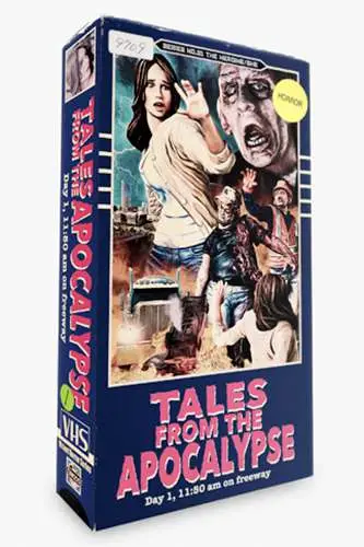 A shoulder bag and a zombie head on the ground are included. The package box is VHS video case size. Fun to collect!