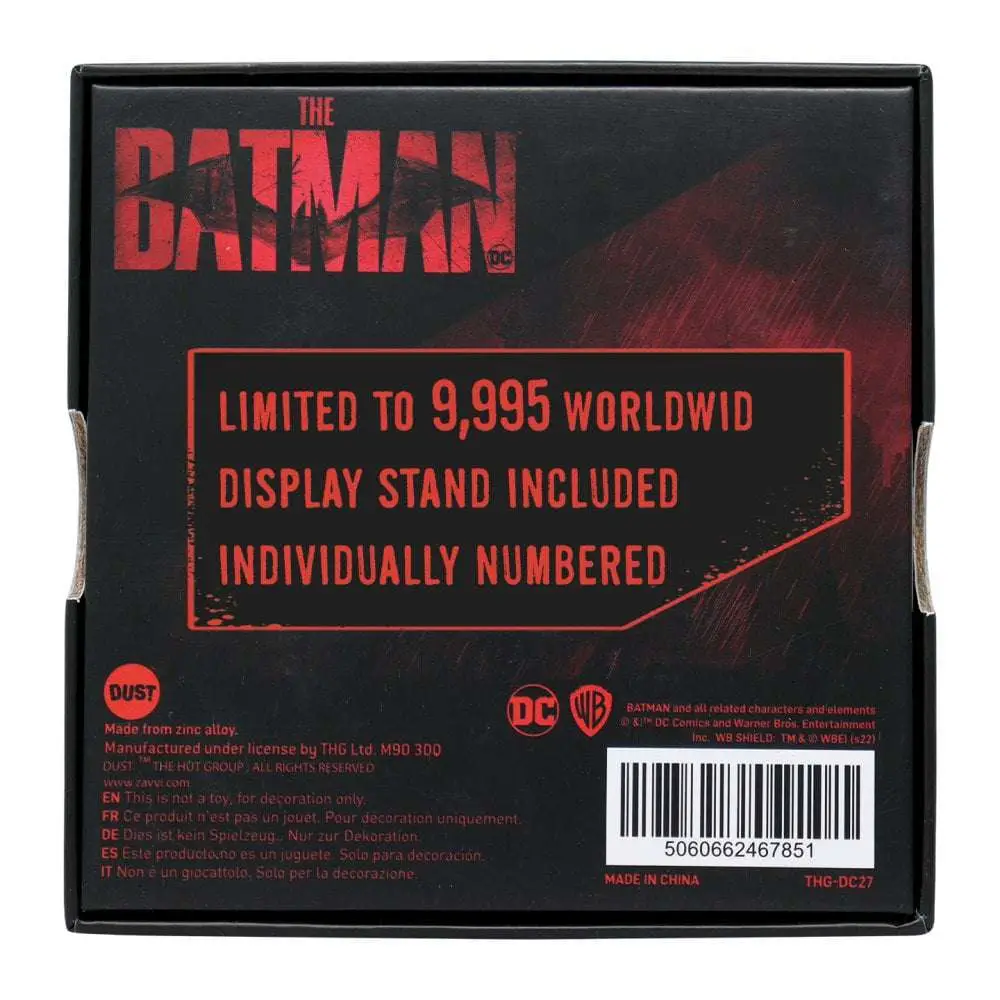 Featuring Gotham City Skyline on the front and The Batman logo on the reverse this heavily embossed medallion is limited to 9995 worldwide, individually numbered and supplied with a display stand within its presentation box.