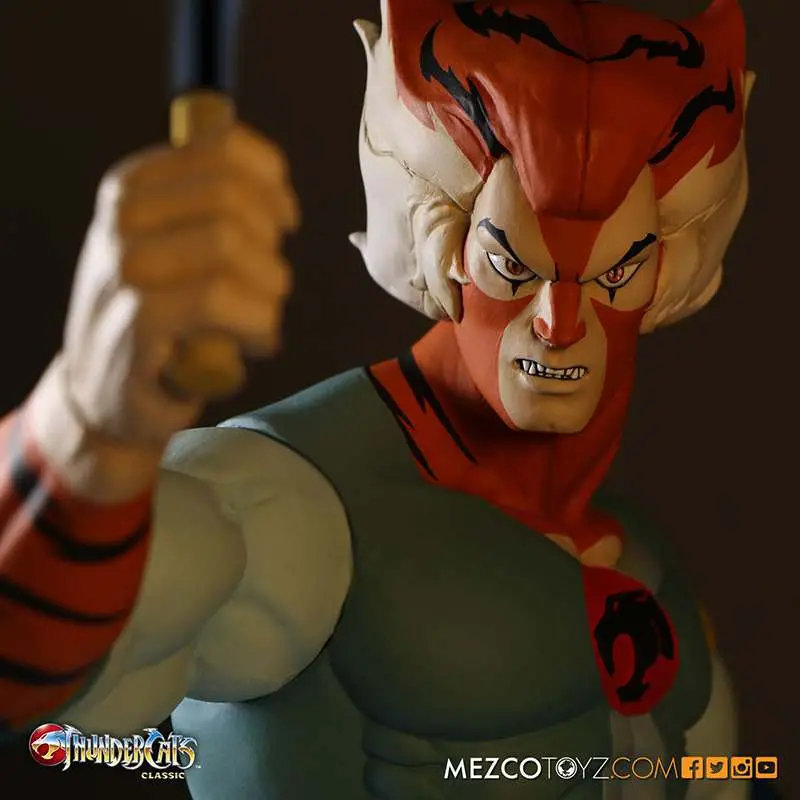 Tygra: Architect, scientist, and warrior. This Mega-Scale figure measures over 13 inches tall, in scale with Mezco’s fan favorite Mega-Scale Thundercats series.