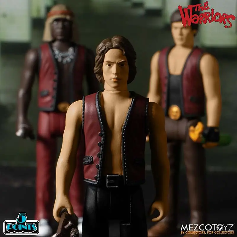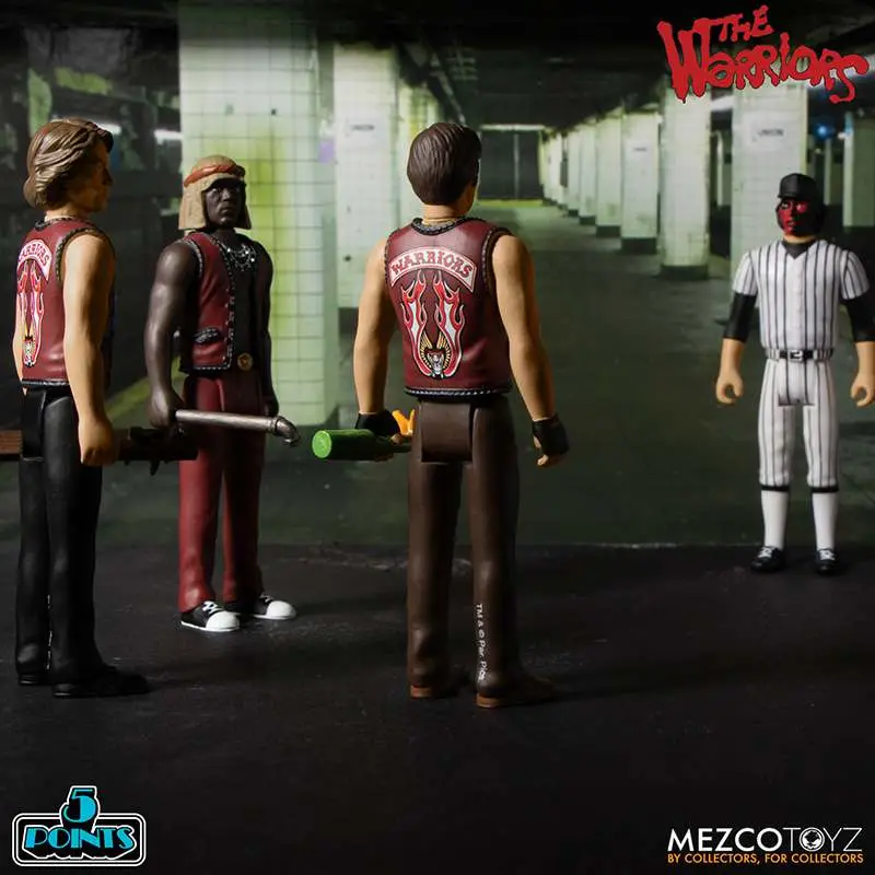 5 Points presents: The Warriors Box Set featuring Swan, Ajax, Cleon, and two Baseball Furies. This box set is complete with an array of accessories that fit neatly into each figure’s hands, as well as an NYC subway platform backdrop, perfect for display.