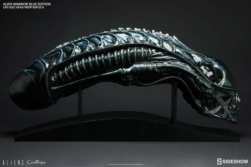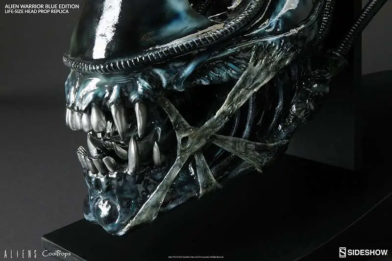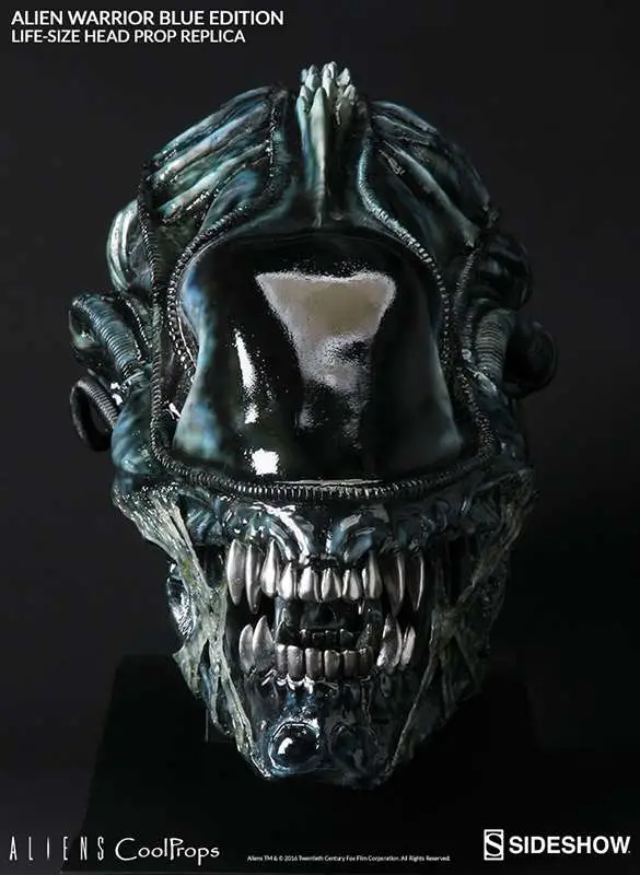 Sideshow and CoolProps are pleased to present the Alien Warrior (Blue Edition) Life-Size Head Prop Replica. The "Alien Warrior" was part of dozens of aliens that were propagated from the alien queen in the 1986 movie Aliens. Alien Warriors appeared many times in the movie, but only a few suits were made for shooting.